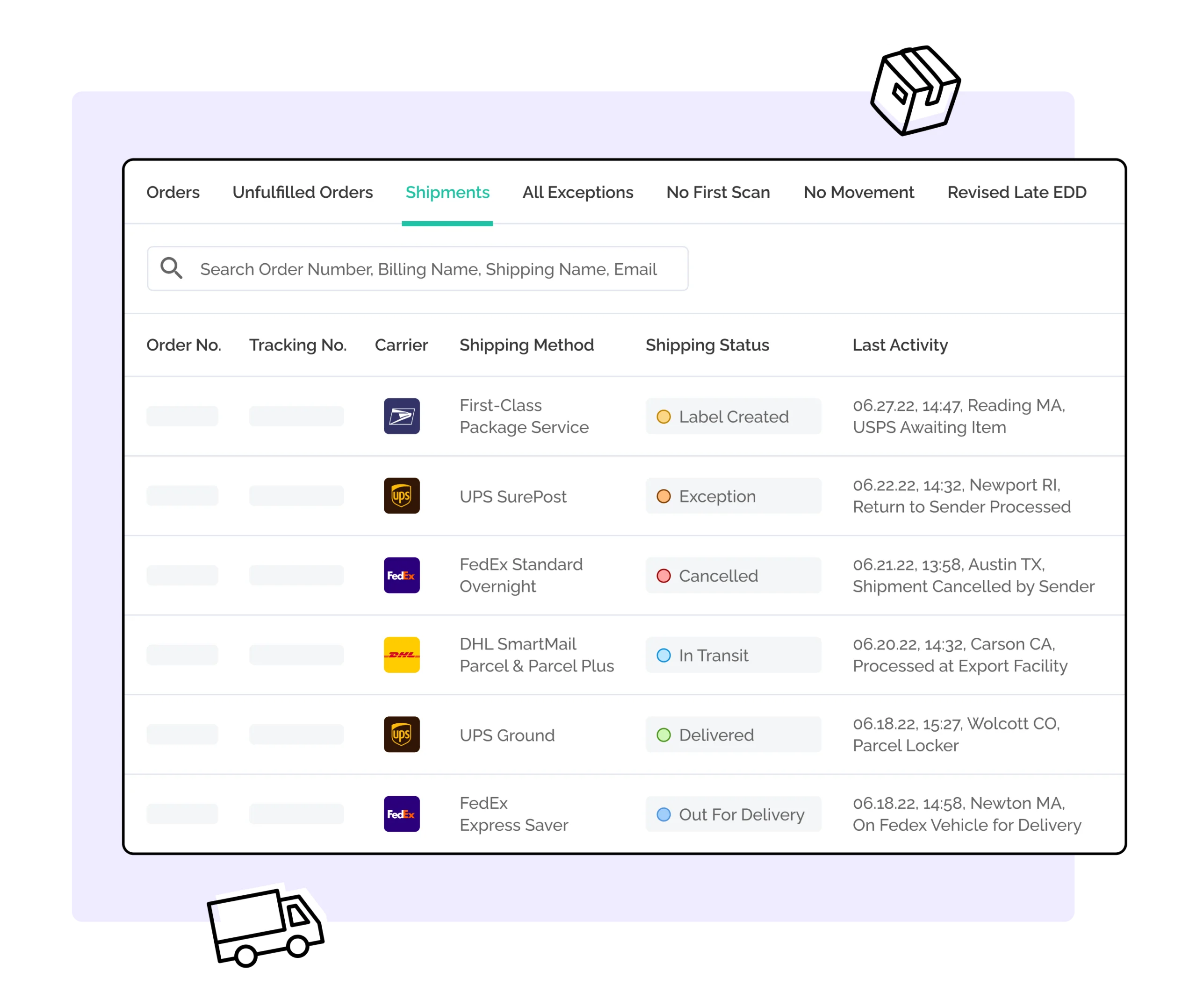 See everything in real time – Track every order across 1,000+ carriers worldwide. Spot problems like delays or stalled shipments before your customers do.